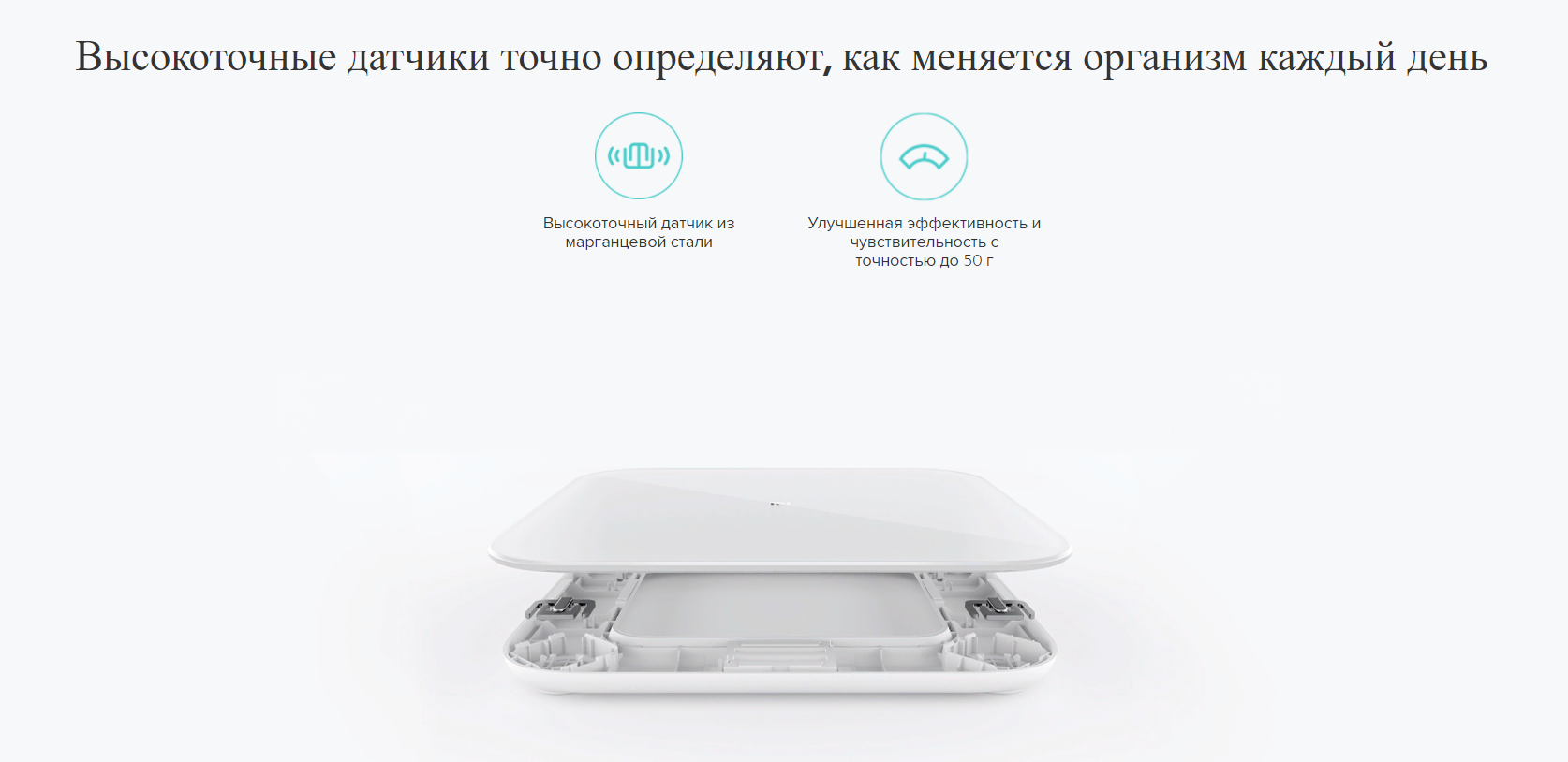 Высокоточные датчики точно определяют, как меняется организм каждый деньВ весах Mi Smart Scale 2 используется высокоточный датчик из марганцевой стали, который может точно распознавать незначительные изменения веса с точностью до 50 г. Эти весы могут с легкостью подсчитать каждый прием пищи или стакан воды и отобразить ваш вес в килограммах, кэтти и фунтах, помогая вам эффективно следить за весом.