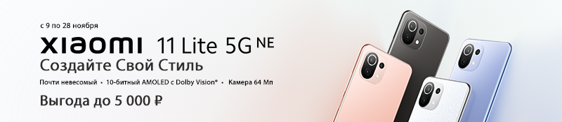 Только с 9 по 28 ноября смартфон Xiaomi 11 Lite 5G NE можно приобрести с выгодой до 5 000 рублей.